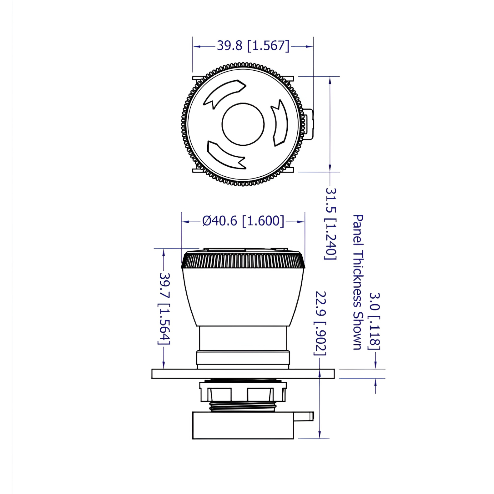 22mm IEC -kytkin, hätä-seis -katkaisin.